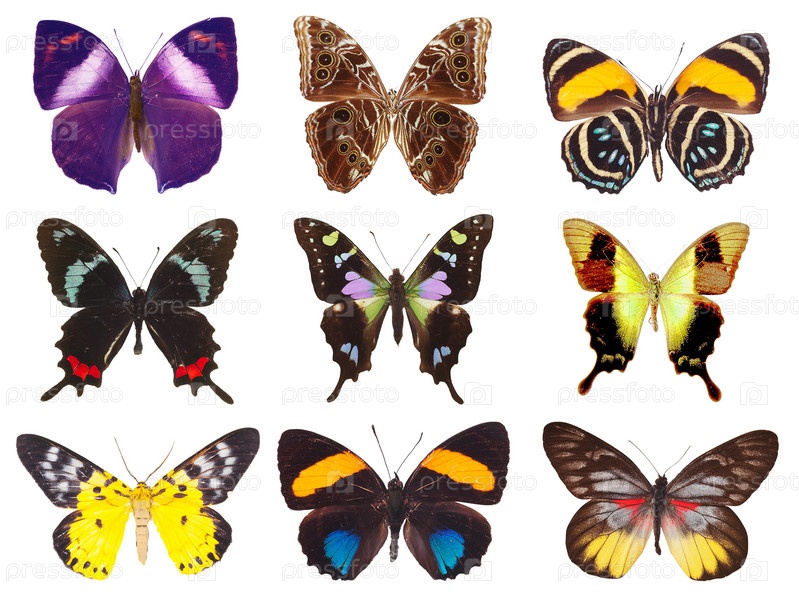 Коллекция бабочек изолирована на белом