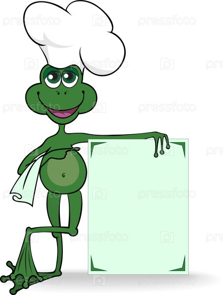 Лягушонок в поварском колпаке указывает на большой плакат