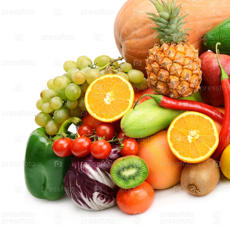 Фрукты и овощи, изолированные на белом фоне