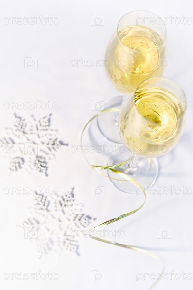 Два бокала вина и снежинки