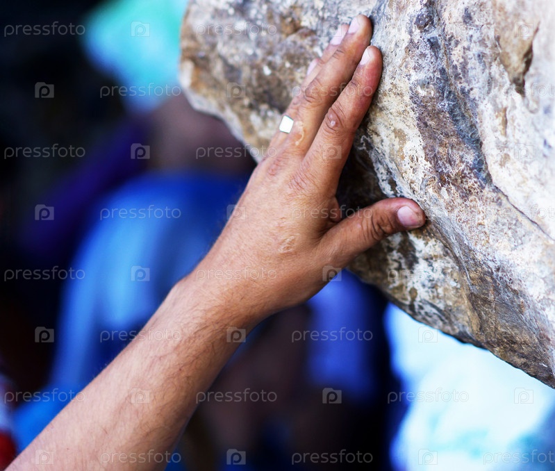 Рука прикасается к камню