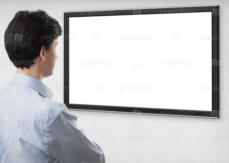 Бизнесмен смотрит на пустой экран