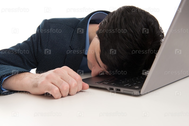 Бизнесмен спит на ноутбуке