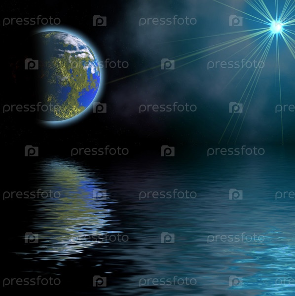 Планета, отражение в воде