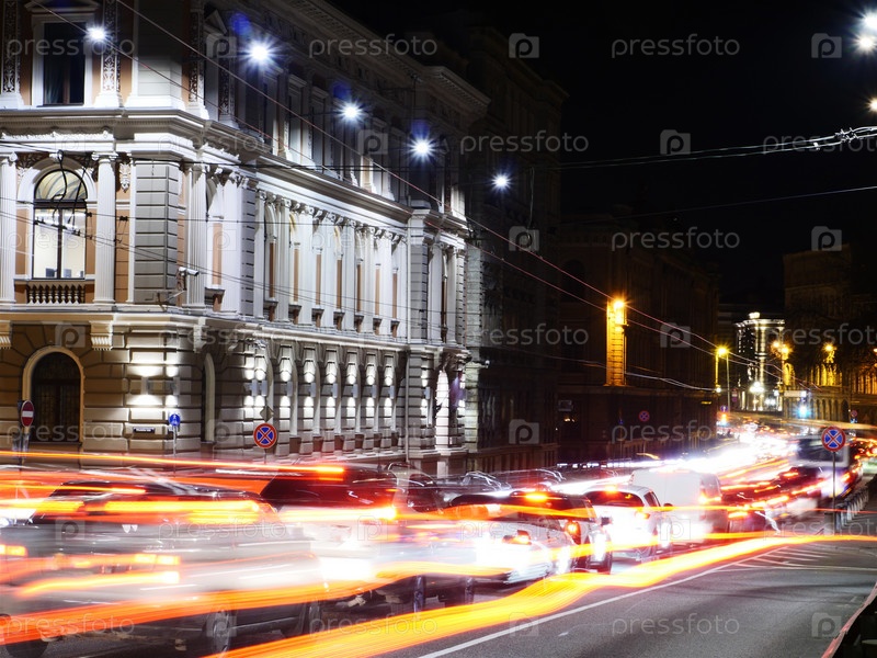 Историческое здание и свет фар