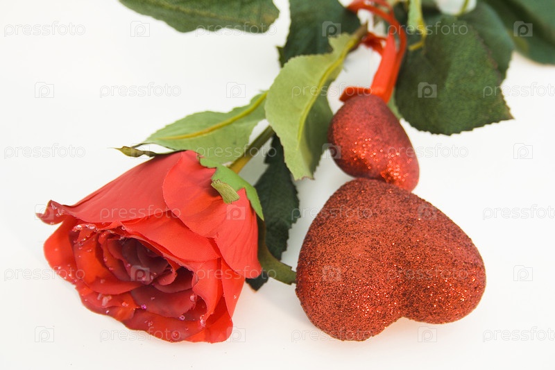 Красная роза и сердца на день Святого Валентина