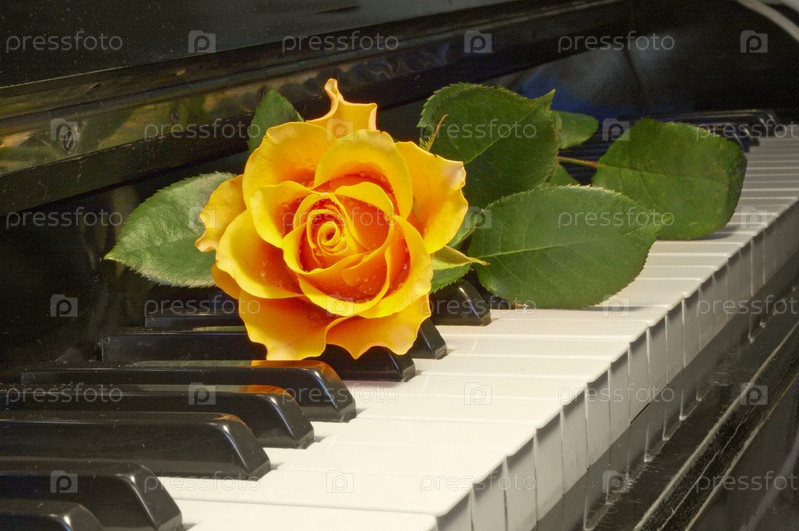 Желтая роза на клавишах фортепиано