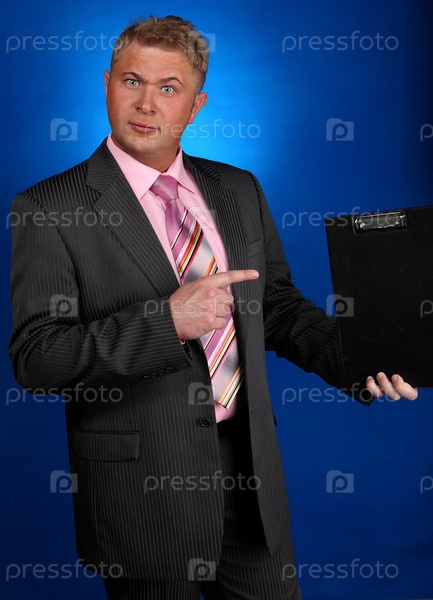 Мужчина в деловом костюме на синем фоне