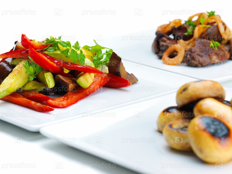 Жаренные мясо и овощи