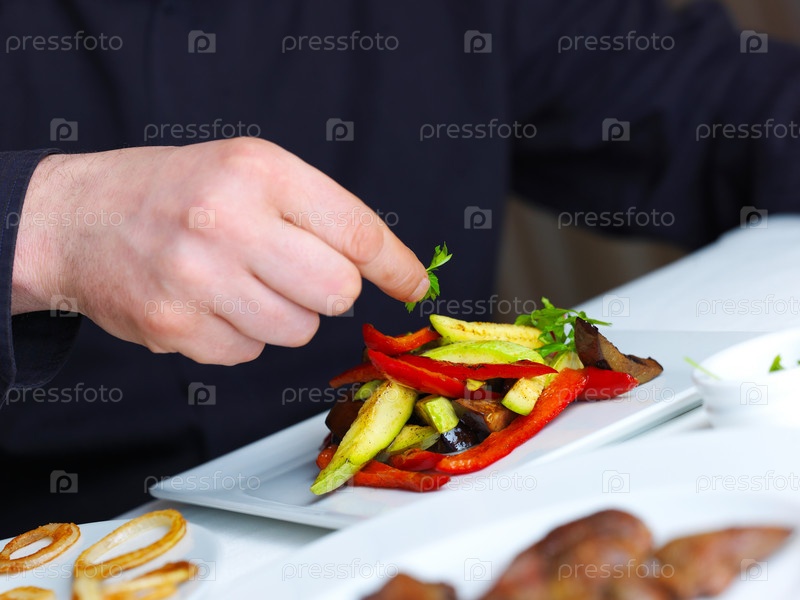 Шеф-повар готовит пищу