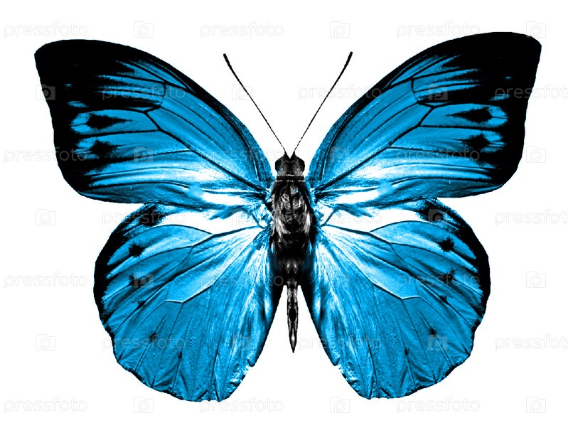 Синяя бабочка изолирована на белом