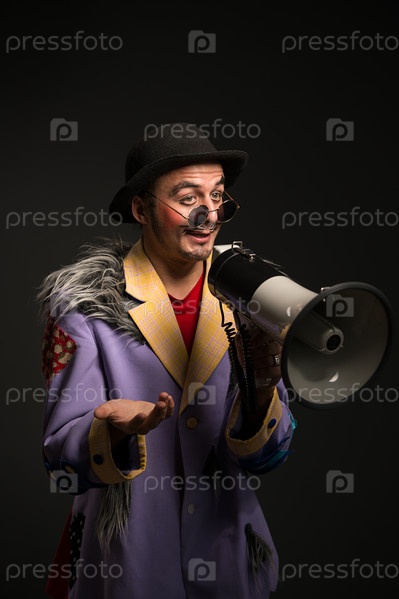 Клоун кричит в мегафон