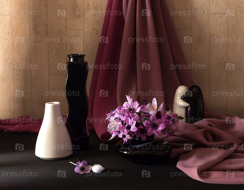 Натюрморт с вазами и дикими анемонами
