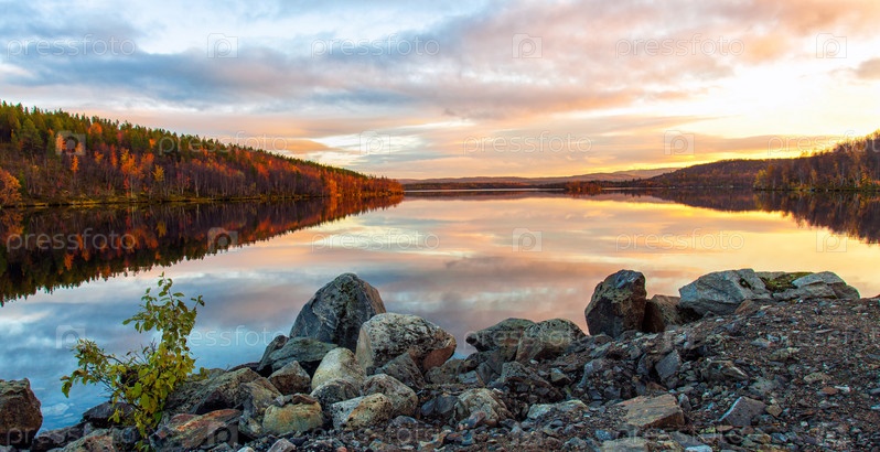 Панорама заката над озером