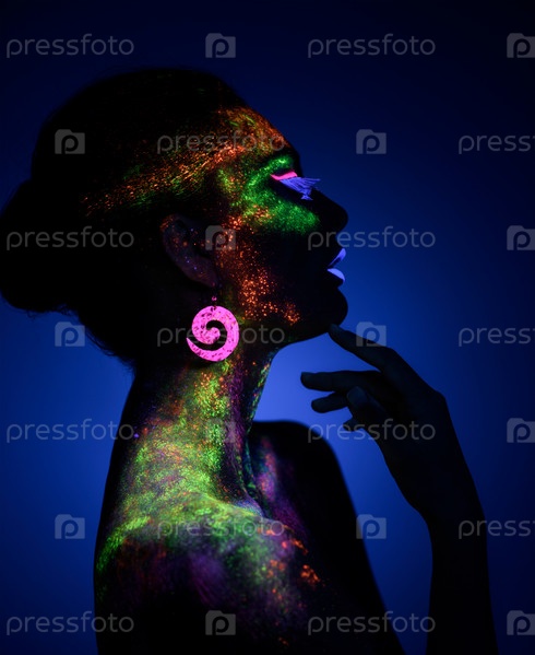 Женщина с ярким флуоресцентным макияжем