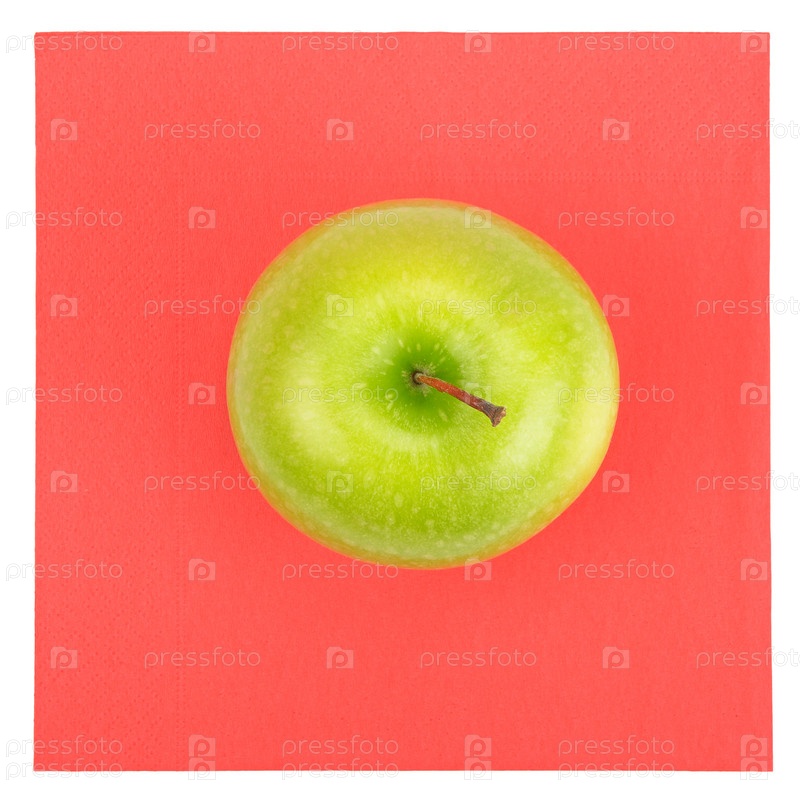 Зеленое яблоко на красном фоне