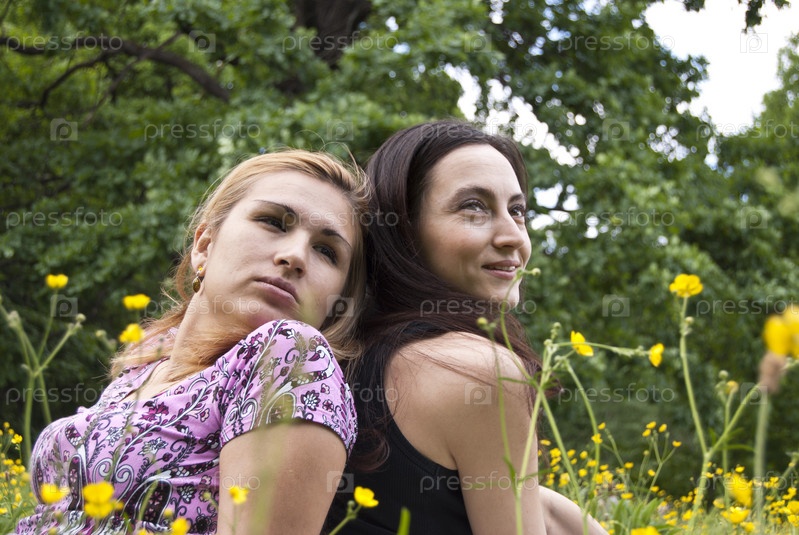 Две девушки отдыхают на лугу
