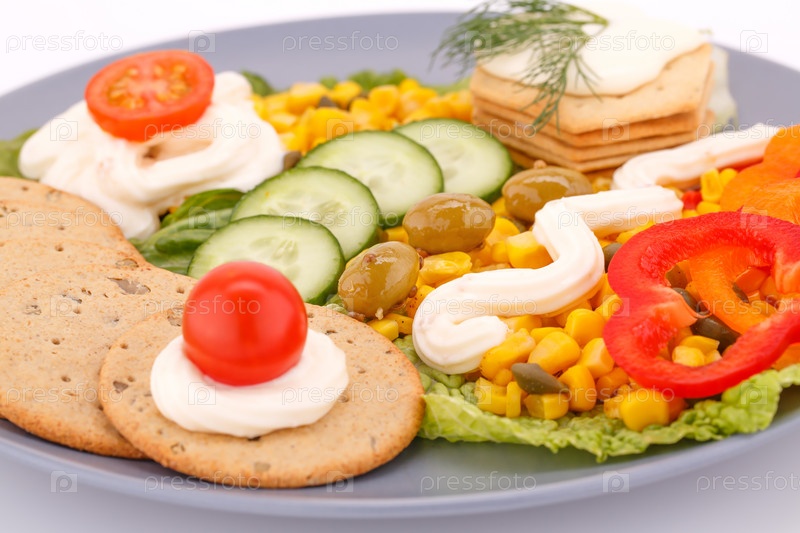 Закуска с овощами и крекерами