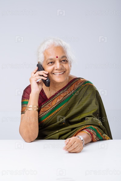 Индийская женщина в национальной одежде говорит по телефону