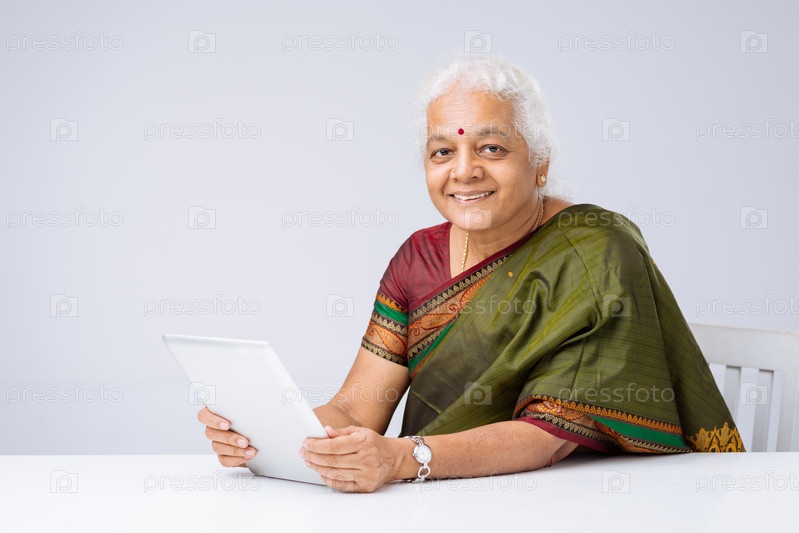 Индийская женщина в национальной одежде с планшетом