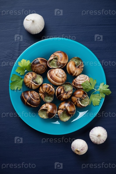Улитки с чесночным маслом в тарелке