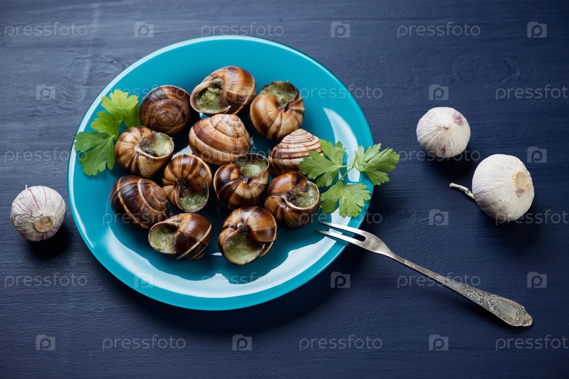 Улитки с чесночным маслом в тарелке
