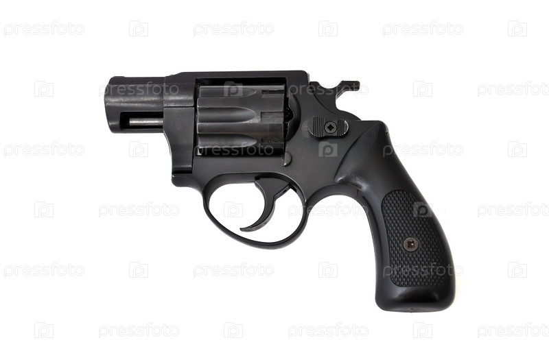 Черный револьвер на белом фоне