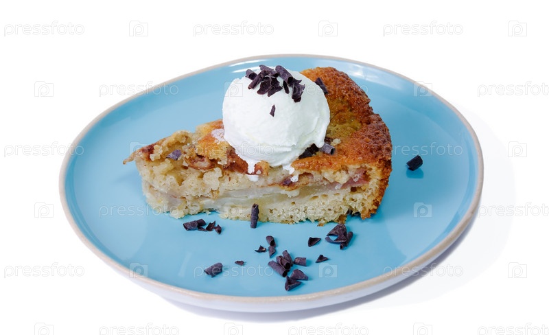 Домашний грушевый пирог с мороженым и шоколадной стружкой