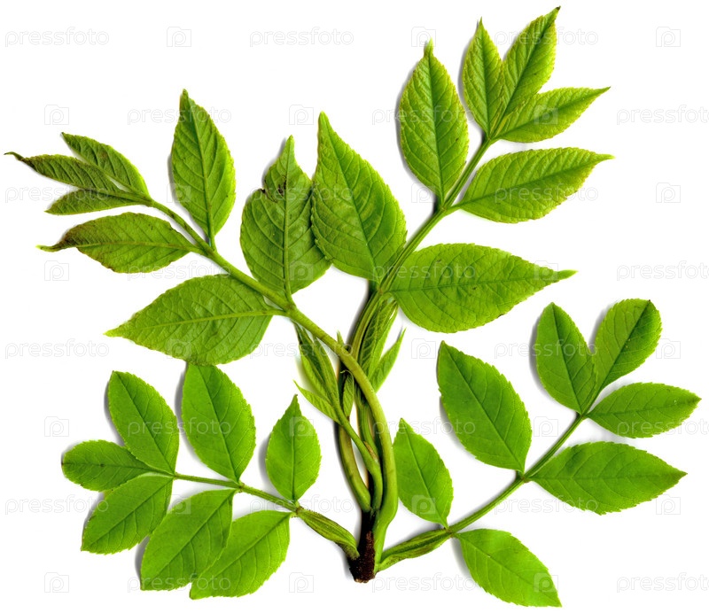 Веточка с зелеными листьями на белом фоне