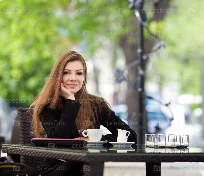 Женщина пьет кофе в кафе