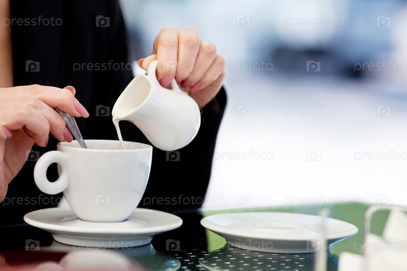 Женщина пьет кофе в кафе
