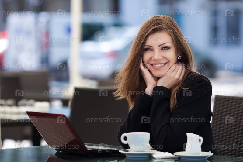 Деловая женщина в кафе