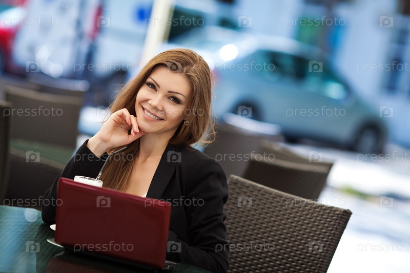 Деловая женщина в кафе