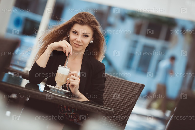 Женщина пьет кофе в кафе