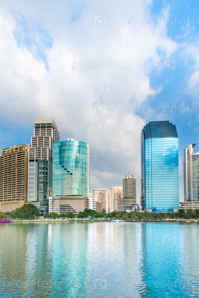 Современный город отражается в озере