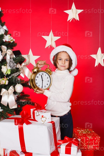 Маленькая девочка у рождественской елки