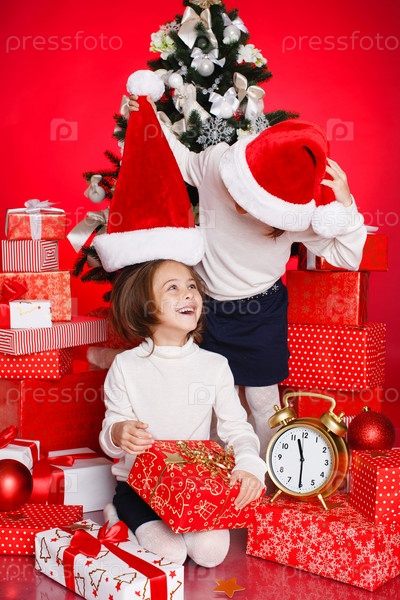 Сестры с рождественскими подарками
