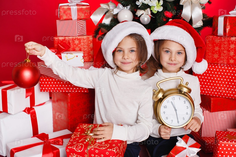 Сестры с рождественскими подарками