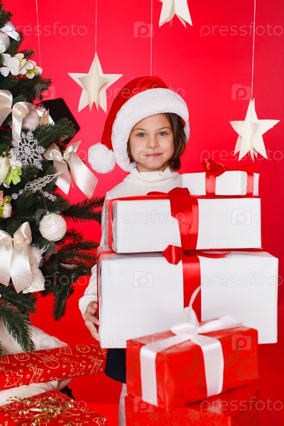 Маленькая девочка с рождественскими подарками