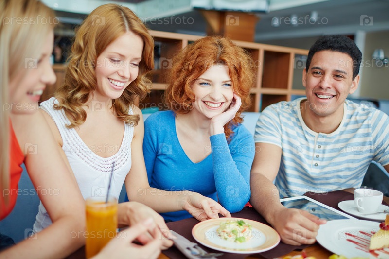 Группа друзей в кафе