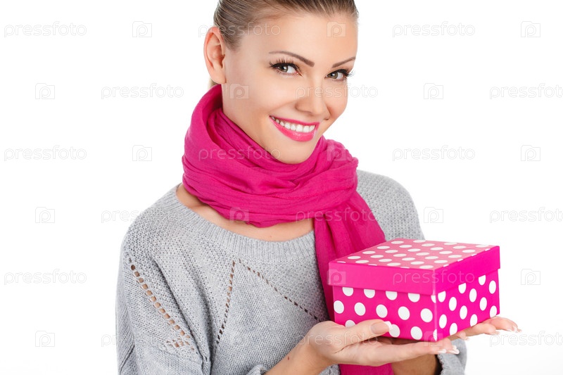 Красивая молодая женщина с подарочной коробкой