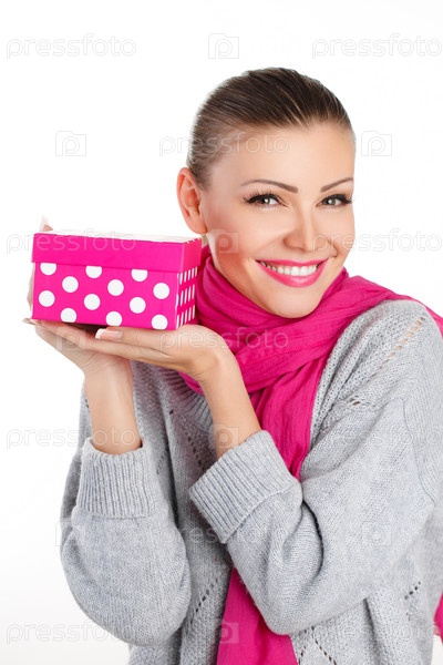 Красивая молодая женщина с подарком