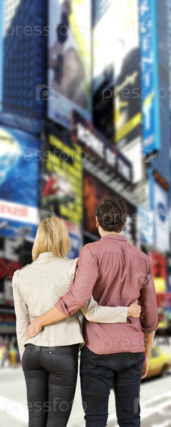 Пара смотрит на рекламные щиты