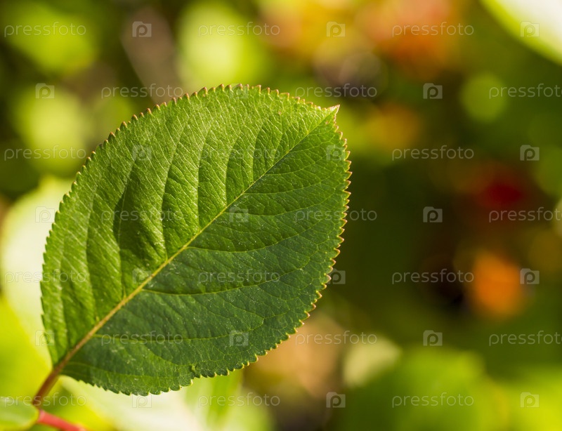Зеленый лист на фоне летней растительности