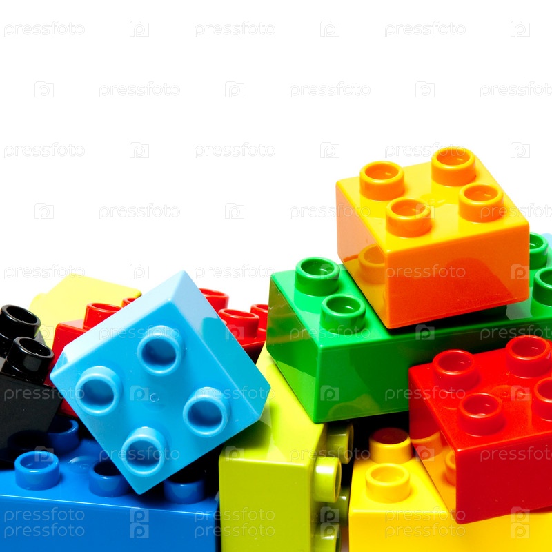 Разноцветные блоки конструктора, изолированы на белом