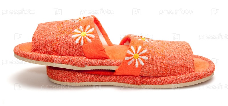 Оранжевые тапочки, изолированы на белом