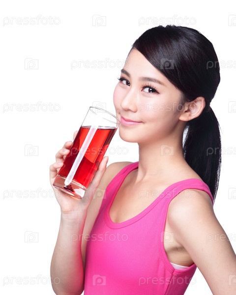 Молодая женщина пьет сок