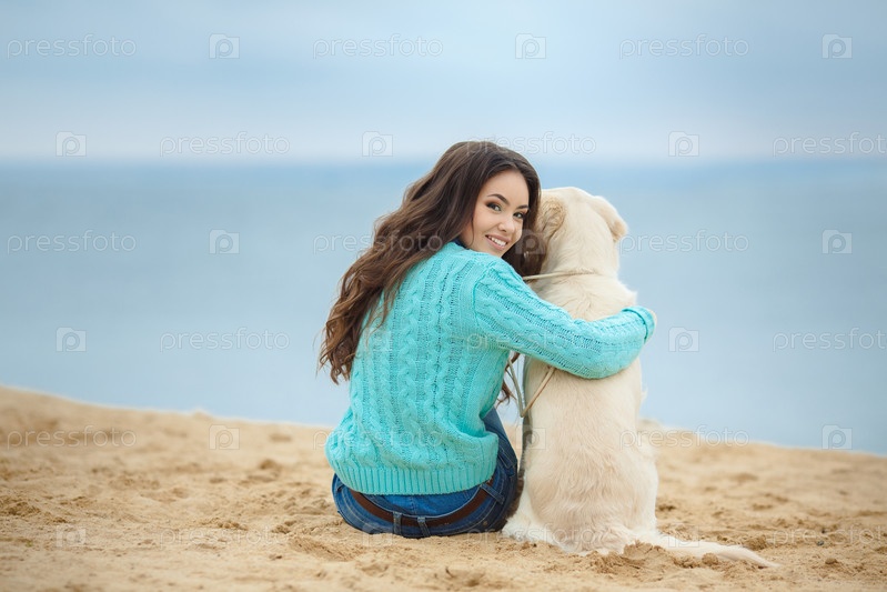 Красивая девушка с собакой у моря