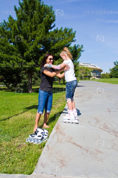 Мать и дочь на роликовых коньках