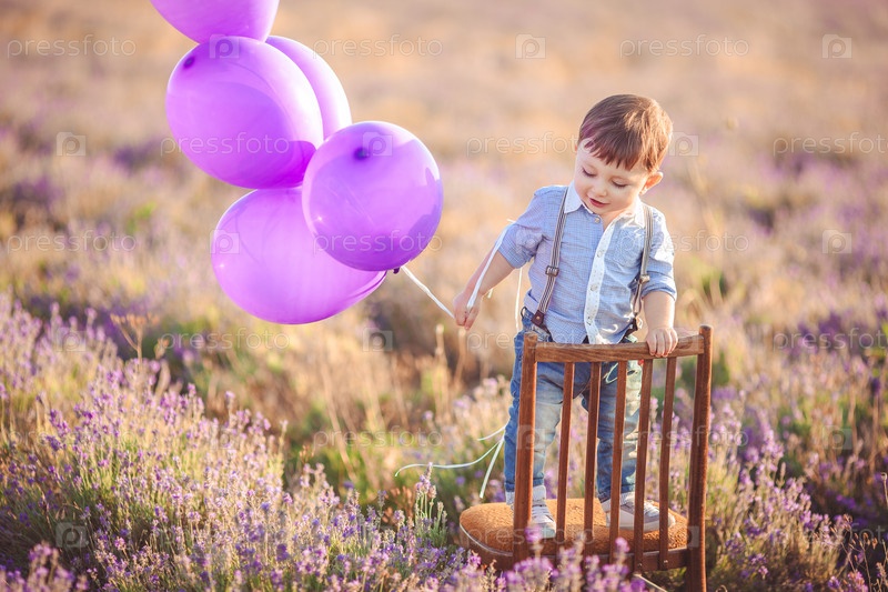 Мальчик играет на лавандовом поле